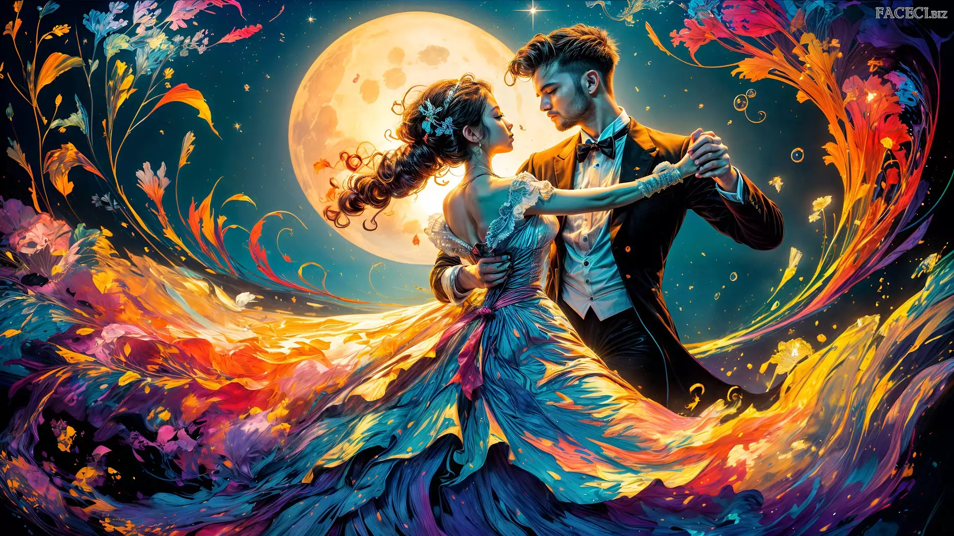 Księżyc, Taniec, Grafika, Kobieta, Mężczyzna - faceci.biz